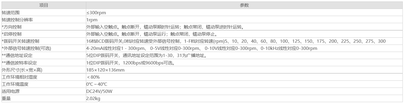 說明:*項(xiàng)目為撥碼開關(guān)結(jié)合外部信號控制方式所特有