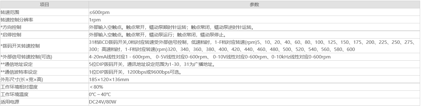 說明:*項目為撥碼開關結合外部信號控制方式所特有