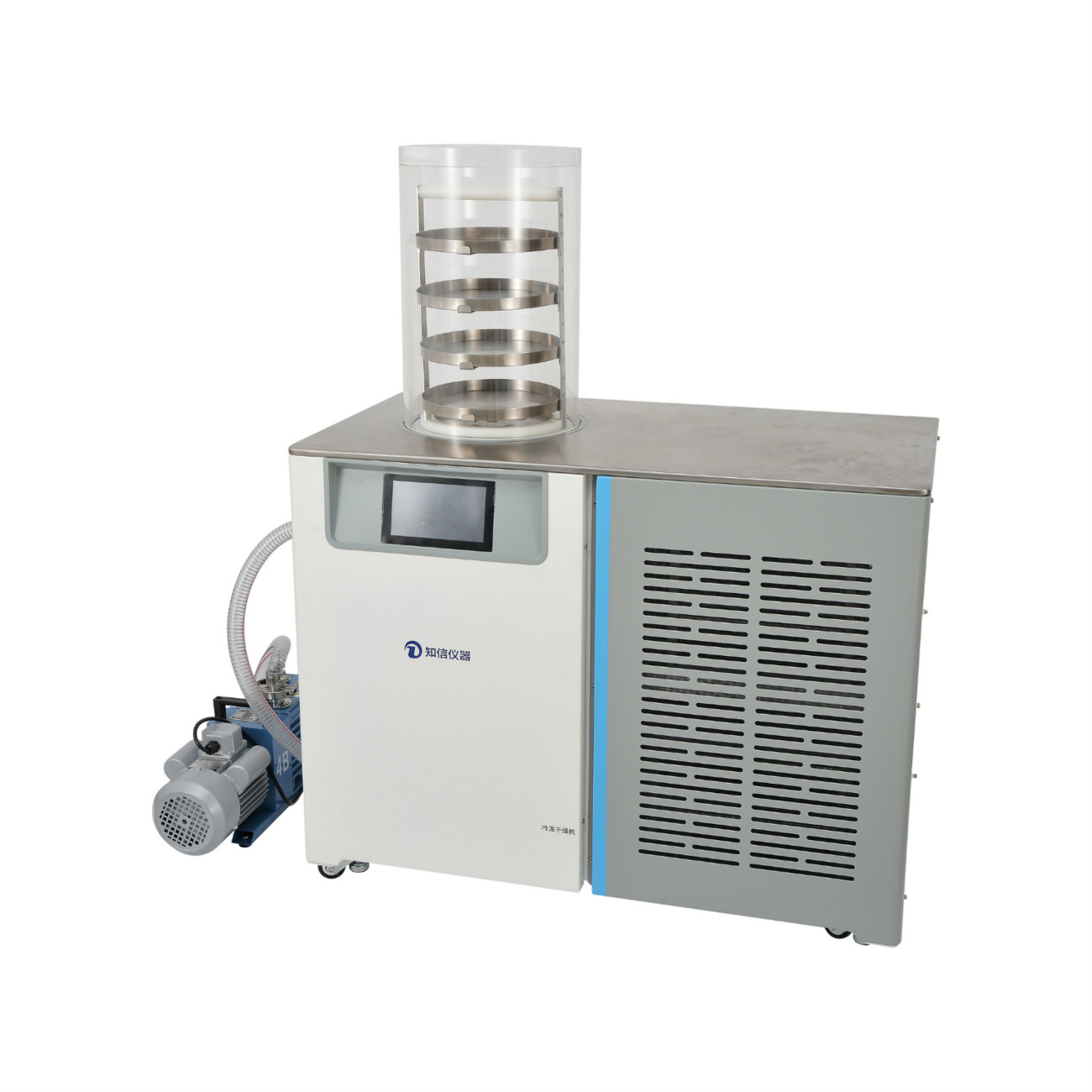 ※ 注:本機冷阱兼作預凍室,擱板加熱可編程控制,采用液晶屏顯示凍干曲線。