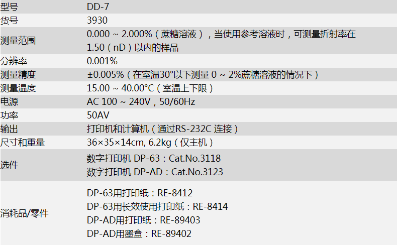 測(cè)量精度 | ±0.005%(在室溫30°以下測(cè)量0~2%蔗糖溶液的情況下) |